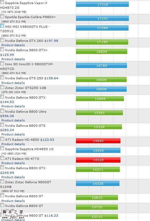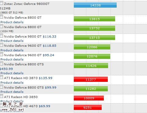 一些专业网站和爱好者经常会对主流显卡进行测试,多多浏览这些测试会帮助用户选择最强性能的显卡,再对比售价,可以找到自己心目中最理想的显卡。比如,国外有网络就为主流显卡做了非常非常详细的比较表格,点此查看。